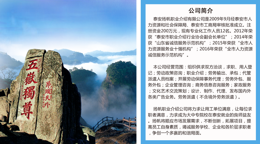 【招聘公告】泰安揚帆職業介紹有限公司某國有企業招聘簡章 [2025-07-25]